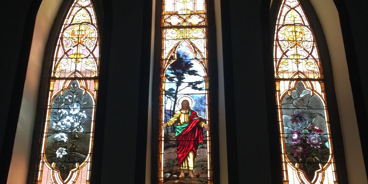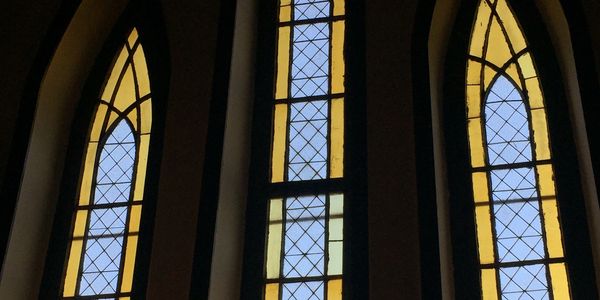 These windows are believed to be original to the 1855 building. They stand proudly at the front of the church building on 118 Walnut Street. They are on hinges and were made to be opened.