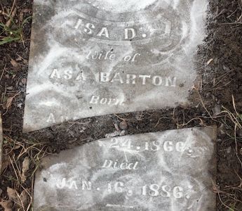 After the homily above was written, the marriage license of Isa was found. She was married on Nov. 5, 1884, and was Isa Dora Whiteker, daughter of John Whiteker. Witnesses to her wedding to Asa Barton were B.F. Whitaker (most likely Whiteker), I.N. Bayless and Joseph Davis.